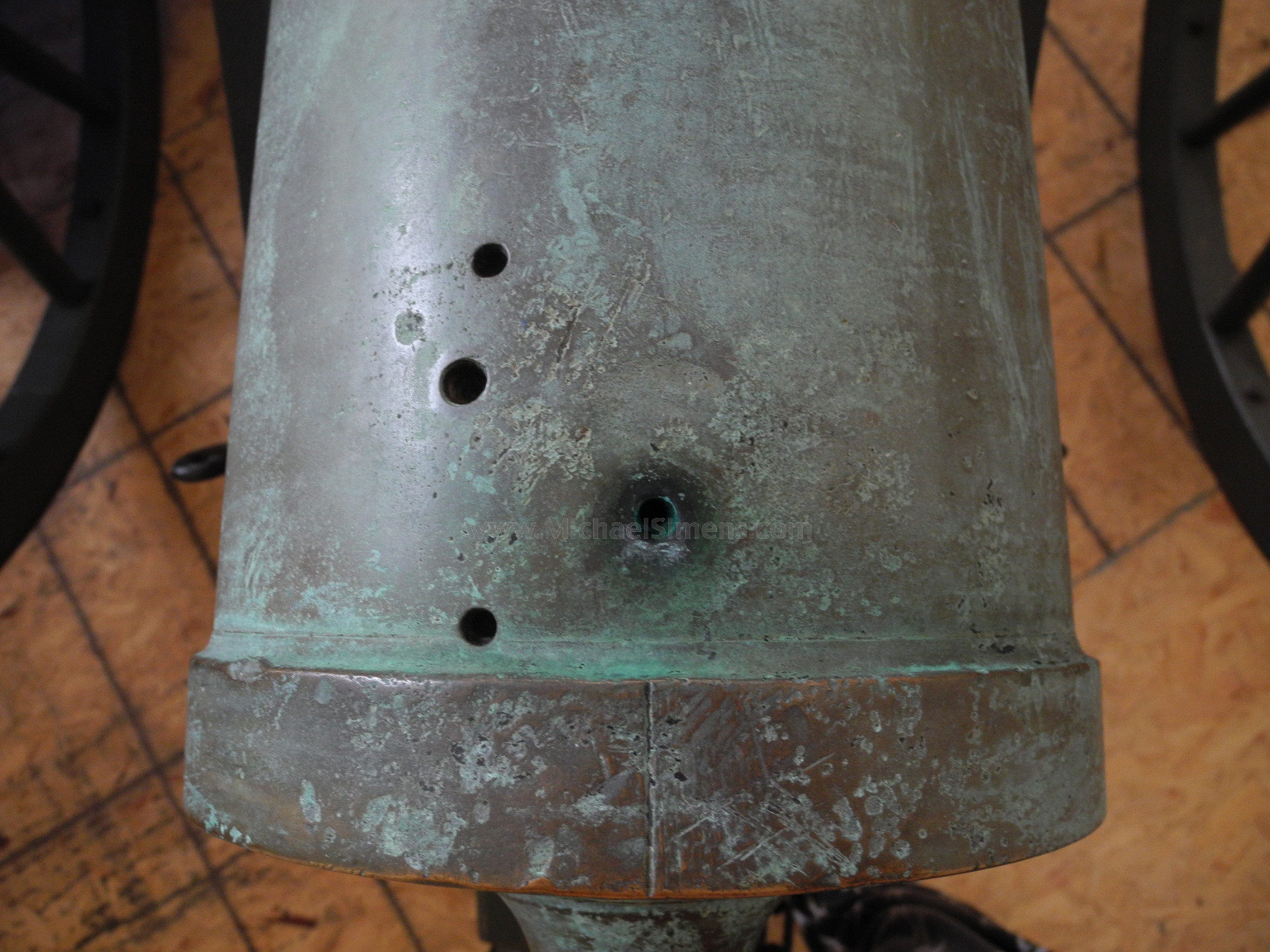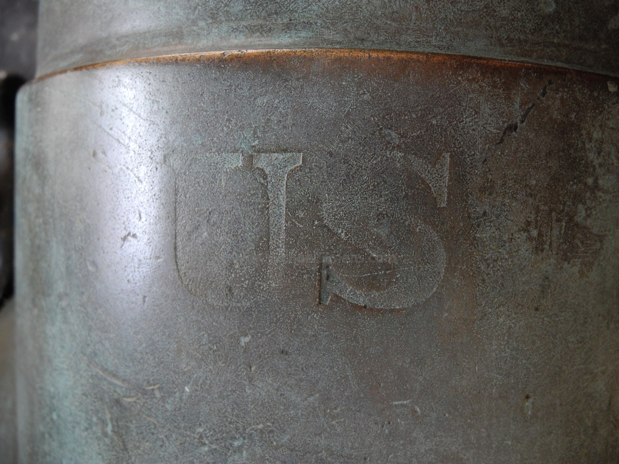 One of my all-time favorite Civil War Artifacts is the classic 6-pounder cannon of Bronze. Although most of us can never afford one, many of us are aware of the chill it gives us when visiting a museum or better yet, a battlefield site where they can be found on display. This rare gun is in wonderful condition and fully marked and inspected. It was cast by the Ames Foundry in 1855. These guns were heavily used before, during and after the Mexican War, but by 1863 were just about out of vogue with the Union who preferred the 12-pounder Napoleon. Not so with the Confederates, who had to garner any and all artillery they could find, obsolete or not. They were loaded with 6 pounders such as this and valued them highly. Virtually any pre-1861 dated 6 pounder could have been used by Confederate forces. The carriage on this gun is a wonderful reproduction in very good condition (there are but a handfull of originals known to exist). The tube shows very little corrosion and a great green patina forming about the gun. I can recall the first few times I visited the Gettysburg Battlefield Park and waking up on the foggy summer mornings to go into town for breakfast on the Taneytown Pike. The cannons scattered across the misty landscape would give me chills. They remain a site to behold to this day and hopefully, shall remain so. I recommend that anyone that's never been to Gettysburg to not only put it on your bucket list, put it at the top while you're young enough to march through the historic fields and still have fresh legs. If you like American History, there's nothing else like it. If you can't make it to Gettysburg or another park, you probably need to buy this gun to get the same effect. Not recommend for those that love apartment living. Shop and compare people, one of these just sold at Auction for over $90,000.00 ! If you know of someone that has been bidding the higher prices at auction for these rare guns, let them know we have one at a bargain compared to recent sales.