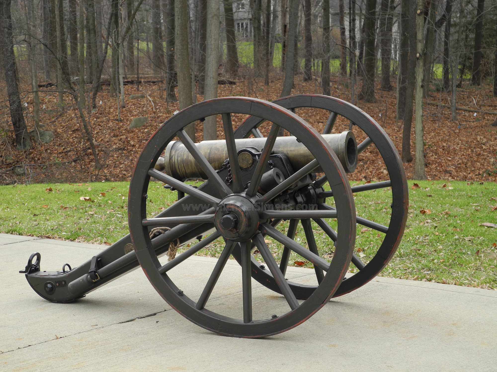 This is a great 1841 Model Ames Foundry 12 lb. Mountain Howitzer on reproduction carriage. These are probably the most desirable field piece among collectors today due to their relatively small stature, classic construction and general history. It shows wonderful condition with beautiful markings. I have a similar example in my office and these are just spectacular display and conversation pieces. When used as a giant shotgun at crucial locations, a pair of 12 pounders could be used with devastating effect to scatter hundreds of 1" lead balls at high velocity upon the enemy. They were used by both North and South with this one dated 1863, certainly issued to the North. Several were captured by both sides and turned against the original bearers. In my opinion, this is the optimum Civil War Collectible. I'd rather have 1 of these monsters in my display room than an entire wall of muskets. I cannot stress how difficult it is to find these smaller guns. Only a handful have been offered in the past ten years and I have been lucky enough that this is my third offering. There is no charge for delivery on this gun East of the Mississippi but a surcharge of an addition $500.00+ to the west of that point (depending on location). A similar gun with NO CARRIAGE sold at auction recently for over $64,000.00. A carriage runs about $8,000 - $10,000.00. That means only an Ames Mountain Howitzer tube sold for almost $65k and it was in no better condition than this one. Shop and compare, then check out our other field pieces throughout the pages of this website.