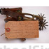 This is just a great set of spurs recently found in an old trunk of objects belonging to Charles F. Sherman of the 2nd Massachusetts (Nims Battery) and so marked with an excellent, original ID tag attached to the spurs. They were taken from a Texan in Western Louisiana and worn by Sherman thereafter during the war. They show classic western design with large, spiked rowels with bobs on each side. The leathers are original with the exception of one that has been replaced with period chain. Strap these on and when you walk into your local saloon, you'll sound just like Josey Wales. Pretty good chance you won't look like him though.