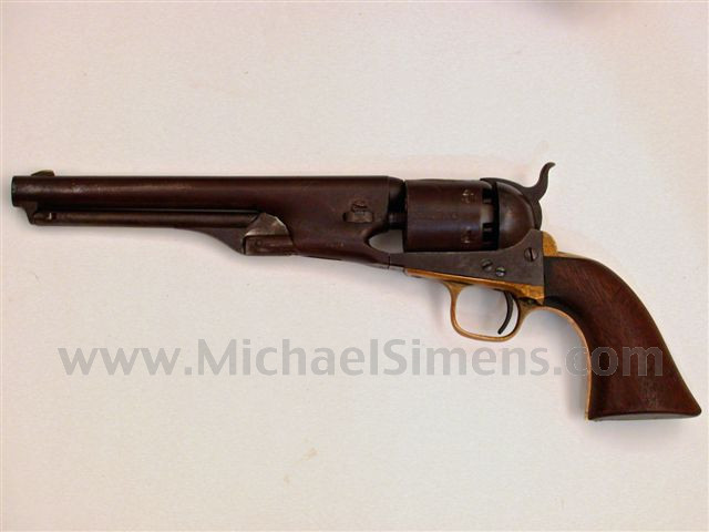 This is a very cool gun in that one chamber blew up and out during its period of use. The metal, having blown outward, was pounded back toward the chamber to free it to turn again and the owner obviously continued to use it as a five-shot! I've never seen anything like it. Other than the blow-out, its a very sharp and crisp gun with light scene.