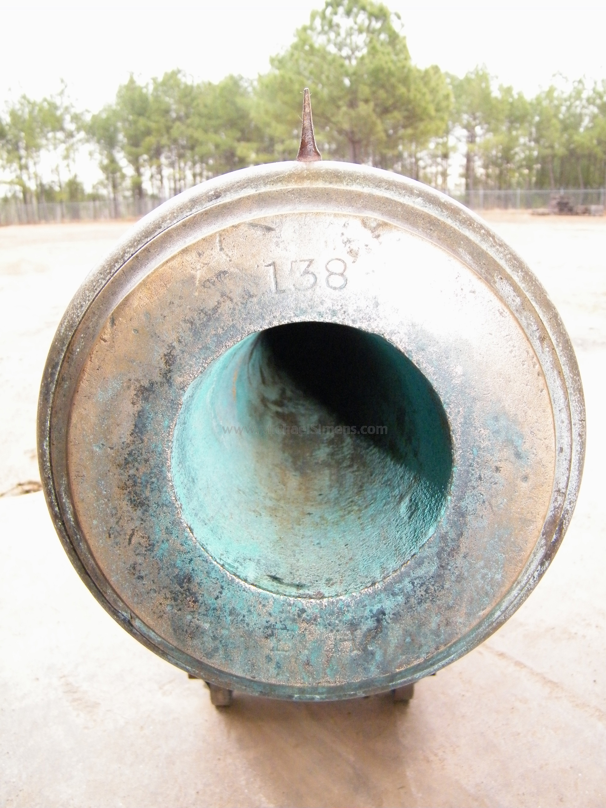 This is really nice Six-Pounder Cannon Tube made by Cyrus Alger and dated 1855. Fully martially inspected, this gun could have seen use by North, South or both. All of these early guns were scattered across the country and as the war broke out this could have been in any fort in either region. The gun has a really nice, aged bronze surface mixing with aged blue-green patina with good markings and some corrosion on the back rim and cascabel. This gun can be purchased 3 ways. The tube alone is $62,500. The tube with a used, but very good condition carriage complete with worm and plunger is $68,500.00. The tube with a brand new carriage (identical to that in our photo) is $72,500 and all prices include delivery east of the Mississippi. A delivery charge of $500.00 applies to any delivery west of the Mississippi. If you've ever wanted a nice piece of artillery, these are getting pretty difficult to find and often sell for larger dollars at auction.