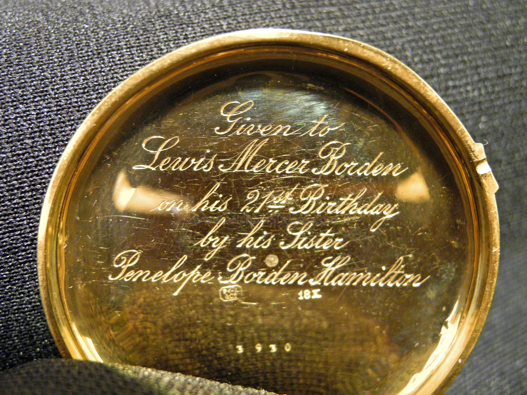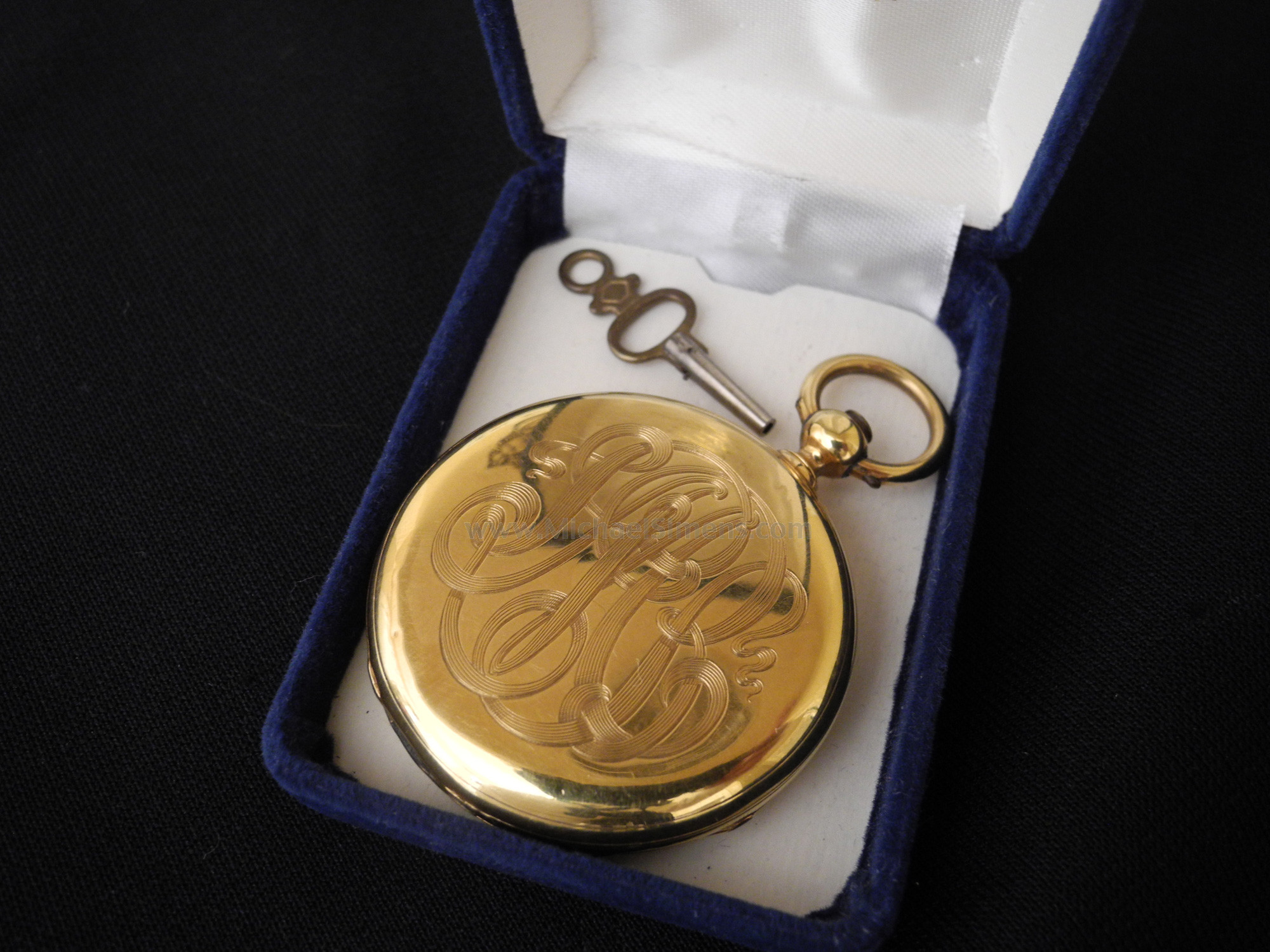 This is a beautiful, 18K Gold inscribed Pocket Watch, identified to a Veteran of The Battle of Gettysburg. This is a post-war, matter-of-fact inscription that describes the use of the watch during the Civil War by the man who carried it, John G. Borden, who mustered and served in the 150th New York from 10/11/1862 to 4/11/64 when he was discharged for promotion on 4/11/1864. On 4/11/1864 he was commissioned into "D" Co. NY 47th Infantry and discharged for disability on 7/20/1864. While with the 150th, his unit saw action at Gettysburg and in battles about Georgia during the Atlanta Campaign. While in the 47th his unit was at Drewry's Bluff and Cold Harbor. I haven't had time to run Borden's history but this is a beautiful and excellent condition watch of Swiss manufacture and imported during the 1860 period. It runs perfectly and includes its original key. If you like artifacts with Gettysburg history, this is a really good one that could still be carried and used daily if you so desired.