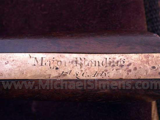 MAJOR ORMSBY BLANDING, 1st SOUTH CAROLINA ARTILLERY. A rare opportunity to own a super piece of Confederate history from the state of South Carolina. Blanding commanded a battery of Artillery that fired on Fort Sumter and later commanded artillery at Fort Wagner during the attack of Colonel Robert Gould Shaws 54th Massachusettes, made famous in the movie "Glory". A 2" thick folder on Blanding and his service comes with the arm. This 1861 Colt Navy Revolver is in untouched, as found condition. Remember, we buy antique Colts and Confederate Weapons. If you have something similar, give us a call !
