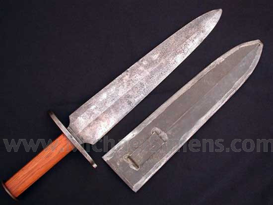 A handfull of these Bowies are known to exist, with one pictured in, "The Bowie Knife Book" and another or the same example in the work of Shannon Pritchard. Pritchard claims to actually know who manufactured them. This one is an absolute "screamer" and in excellent condition. Worthy of the finest collection.