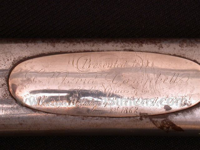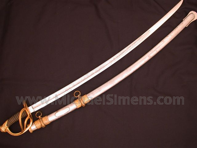 This is an outstanding Tiffany cavalry Officers saber presented to Colonel David Campbell of the 4th and later 5th Pennsylvania cavalry. I took over 20 photos of this sword and none of them did it justice. The blade is the BEST I HAVE EVER SEEN ON ANY SWORD, OF ANY ERA with 9 figures etched into the blade to include soldiers from different eras of history as well as cherubs and military motifs. I am still researching this sword and will try to post some better photos. If you love the Civil War Products of Tiffany, you need to call about this sword. The blade gleams as if coated with glass.