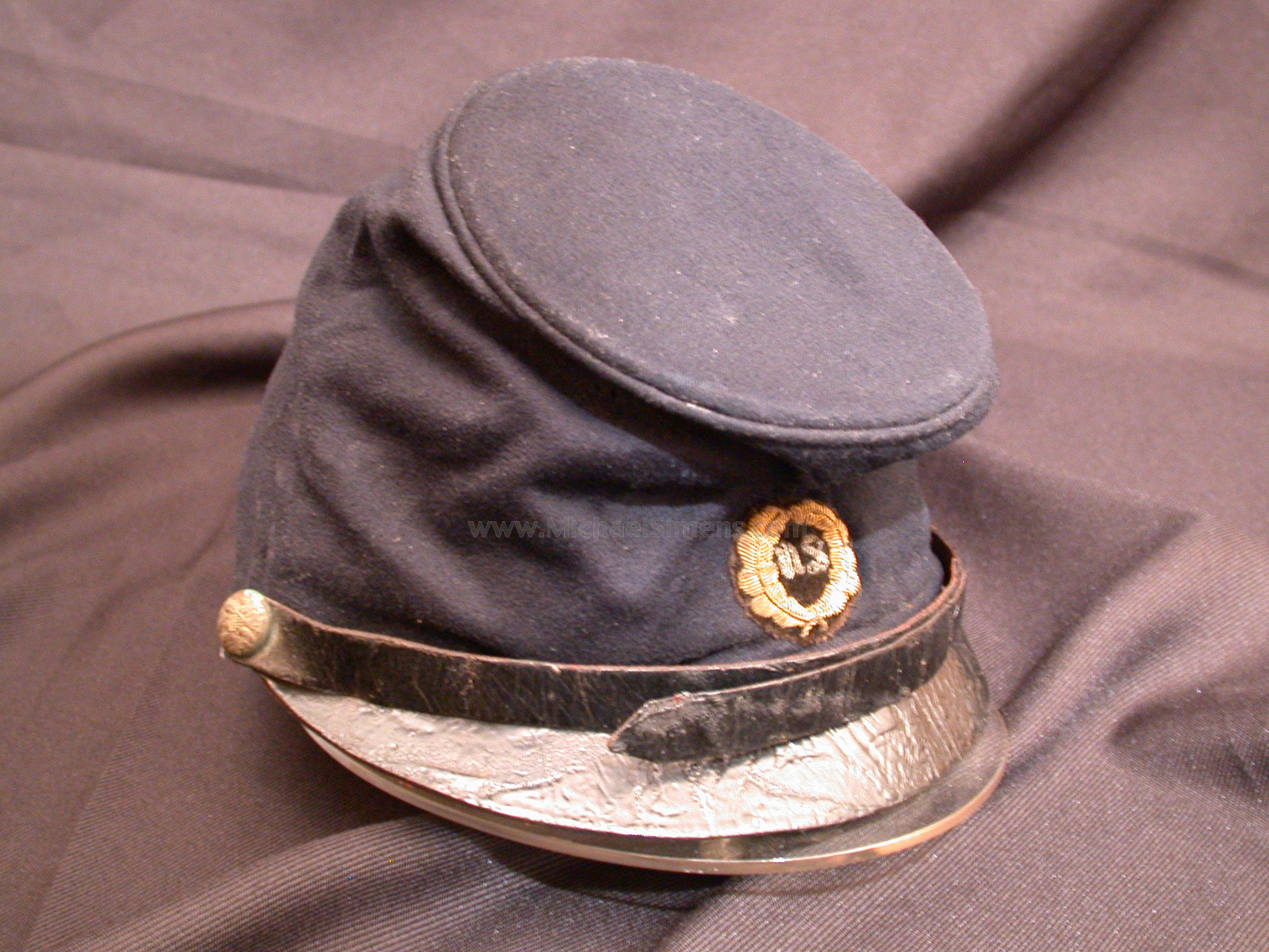 This is a WORLD-CLASS hat with all the bells & whistles. It retains its original lining, sweatband and makers label from Schuyler, Hartley and Graham. It has its ORIGINAL insignia and is not one of those hats that's had a "wondering patch" applied to it. It's missing the strap-loop and has only a moth nip or two. This is for the finest of collections.