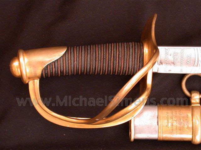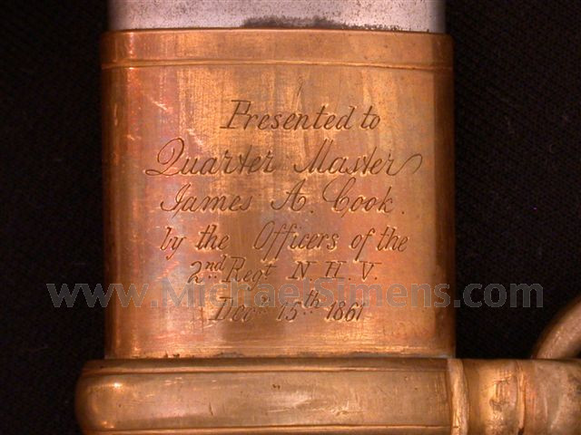 This is an excellent condition Horstmann Cavalry Officer's Saber that is Inscribed and Identified to Quartermaster James A. Cook of the 2nd New Hampshire.