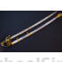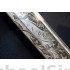 Other than the edged weapons of Tiffany, those manufactured by Henry Sauerbier of Newark, New Jersey during the Civil War are my favorites, and most astute collectors and experienced authorities on swords of this period generally agree with me. The reasoning is simple. Sauerbier was perhaps the only manufacturer that realized the importance of a presentation sword, other than Tiffany. A presentation sword was special, it had meaning. He didn't want to present simple boiler-plate specimens to buyers and presenters, so he changed the game in a master stroke of marketing by changing things up. I wouldn't doubt that his brainstorming was the result of a trip to Tiffany or perhaps Schuyler, Hartley and Graham in New York and viewing their variety of product that spurred his creativity and competitive nature. Different hilt design and grip combinations of leather, sharkskin and pewter often embellished with semi-precious stones or glass, mother-of-pearl (often carved in patriotic motifs) pewter or other media in the form of inlayed medallions were the order of the day in combination with a mix of ring-mounts and drags, also inlayed. Blade widths, thickness and lengths with custom etching were varied, as were the scabbards. This example is no exception to the creativity of Sauerbier. Its hilt and mounts retain 90% original gold gilt, the grip is pewter and includes a carved pewter inlay of a Federal Shield. The two most unusual features are its deeply etched scabbard with dynamic "U.S." motif and a fierce patriotic eagle, and an etched blade with military characters (one on horseback) with the surface retaining almost all of what appears to be original tin plate. I've never seen another like it. If you wish to learn more about Henry Sauerbier and his products, I recommend the books of my good friend John Thillmann. His works on Civil War and Officers swords and sabers can be found on the internet. Although out-of-print, they are a must for the sword enthusiast and are occasionally available from fine book stores.