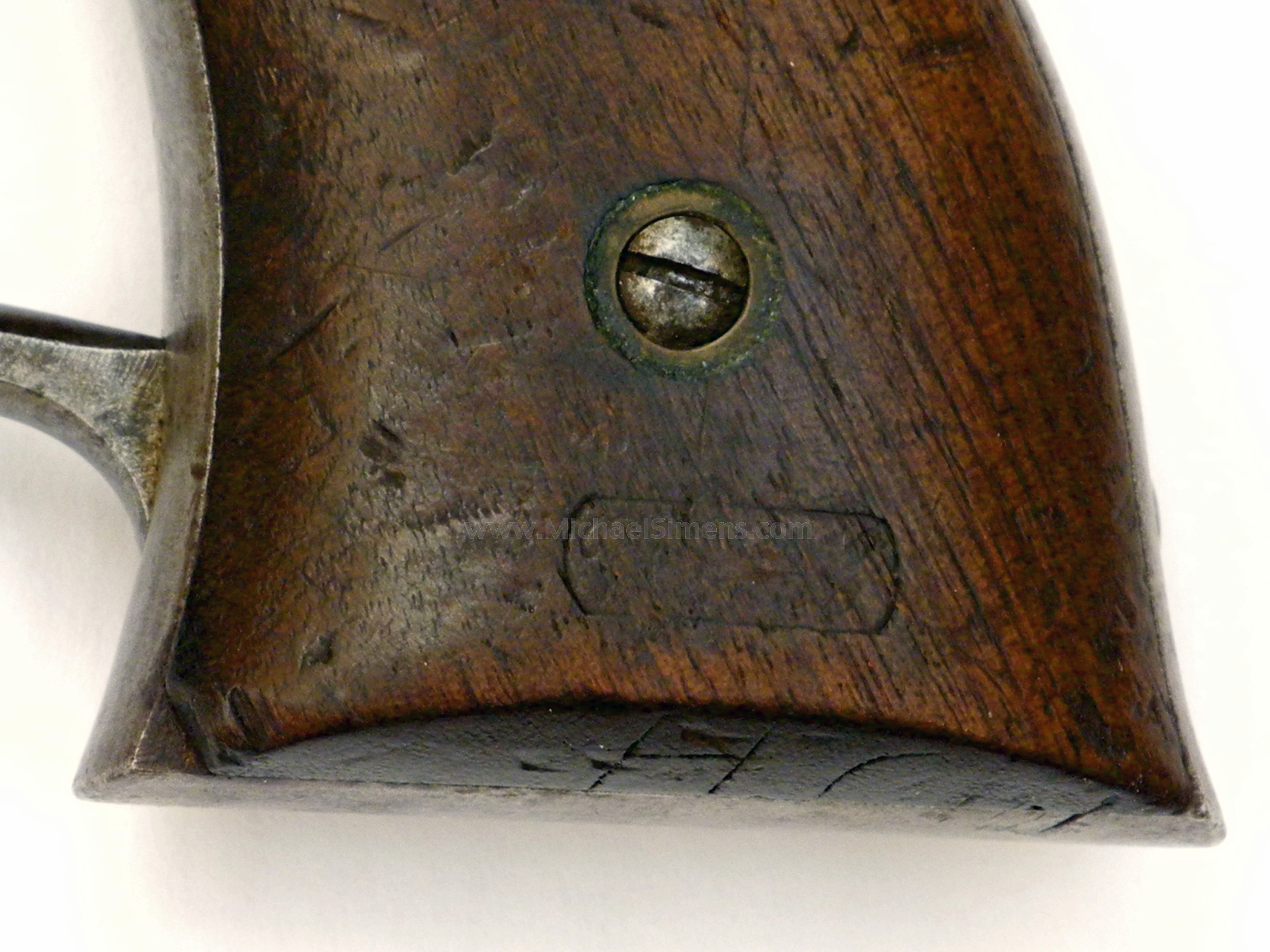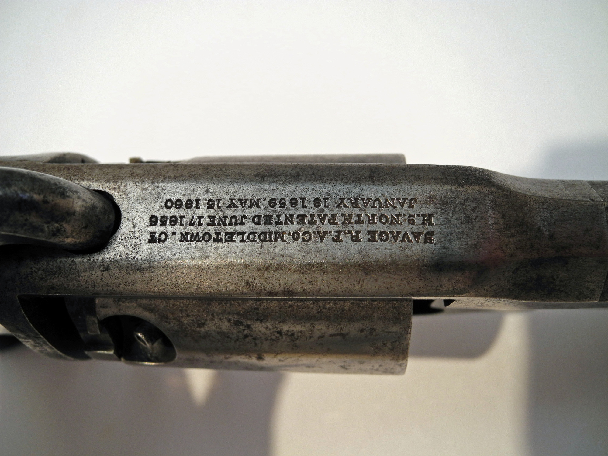 Savage Navy Revolvers are seldom found with much of any original finish, and this one is no exception. However it is about the finest condition gun with no finish that I have come across. All markings, edges, action and grips are about as sharp and crisp as could be found. Take a close look at the photos and you'll see what I mean. Discernible cartouche and a near perfect, deep address on the top-strap tell the story. Almost the entire production of these guns were purchased and issued to Union forces during the war and this is no exception, being fully sub-inspected. A great gun.