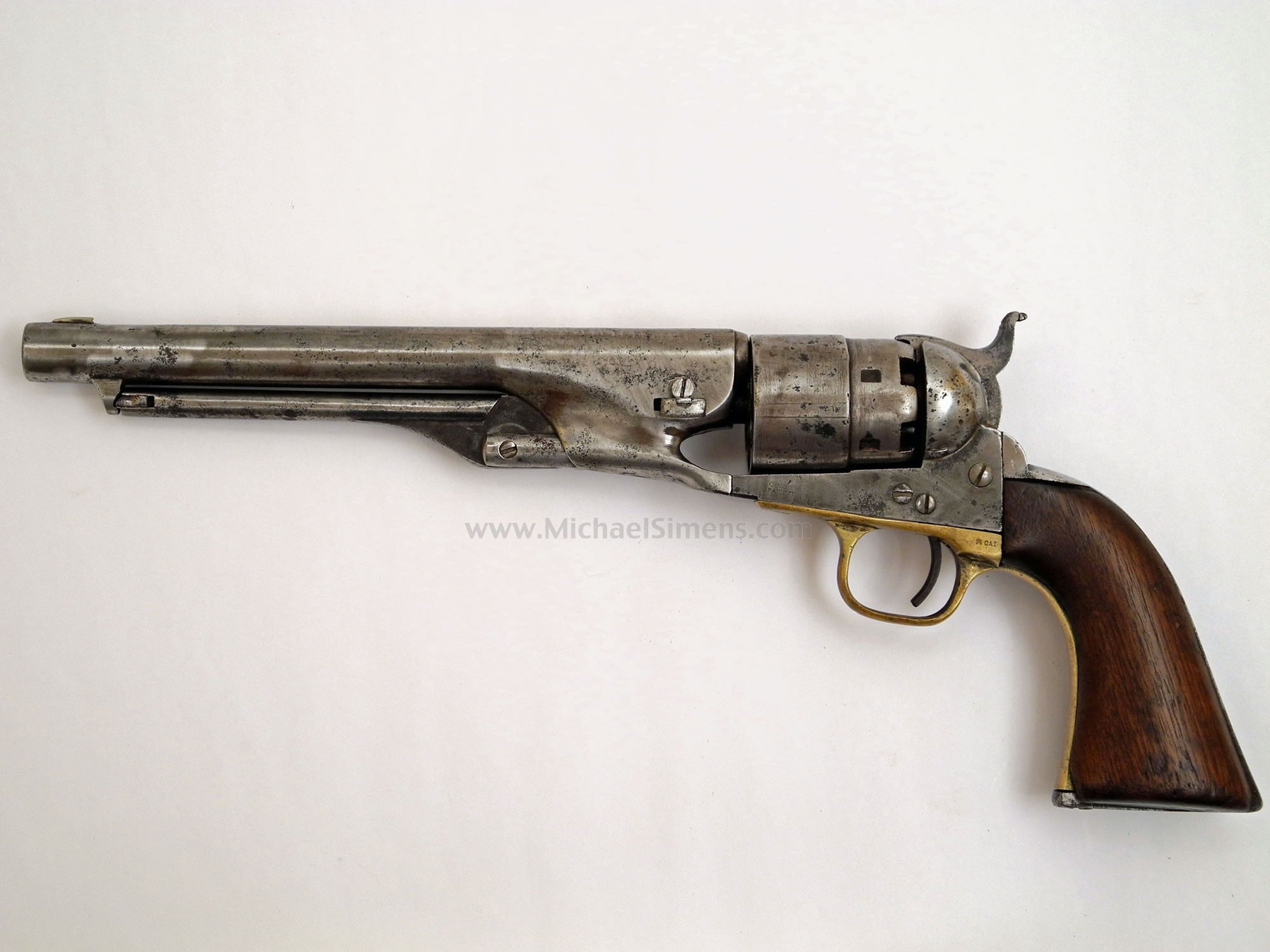 I'll make this description short and sweet on this Colt 1860 Army revolver. The action on this gun works great, it is all matching numbers and the markings are faint due too somebody whizzing it with sandpaper. It is still a real gun and should be salvaged by removing these marks. A good project gun for someone with skill and patience.