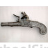 This little flintlock pistol shows a tough combination of features. Pocket sized with a cannon barrel, it's trigger flips down as you pull back the hammer as with most box-locks. Early cannon barrel, fully engraved and the most unusual part is the solid steel grip. These are almost always found with wood grips with wire inlay. This example had a problem with the action and I spent $150.00 to get it fixed but it still has a problem holding on full-cock and I don't have time to send it back and forth so I'm moving it down the road. A really cool and interesting little gun, I doubt we'll see another for a long time.